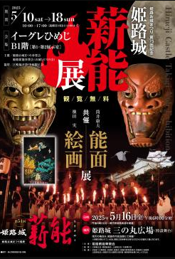 ■姫路お城まつり75回目の開催を記念し、日本伝統文化の継承・PRを目的に能面・薪能衣装・姫路城薪能過去番組の展示など行う「姫路城薪能展示」が5月10日より開催されます。