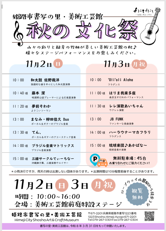 姫路市書写の里・美術工芸館では多彩な文化イベントが開催されます。