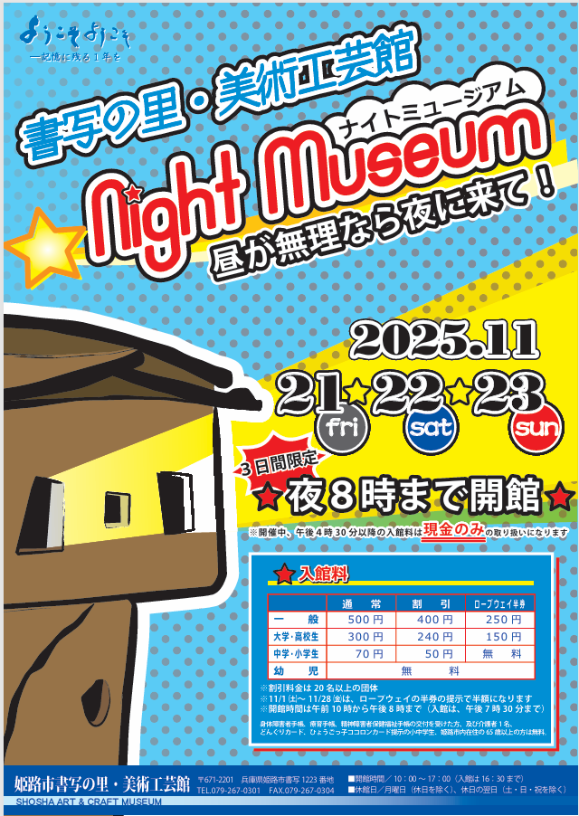 ※11月5日までに事前申込要⇒書写の里・美術工芸館ナイトミュージアムツアー | 姫路市